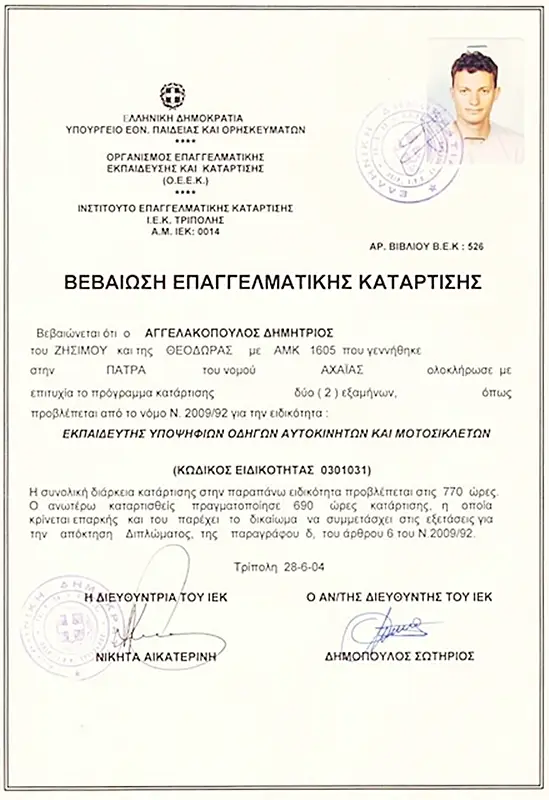 Όλοι οι εκπαιδευτές μας είναι πιστοποιημένοι Επαγγελματίες Εκπαιδευτές Οδήγησης & Κυκλοφοριακής Αγωγής.